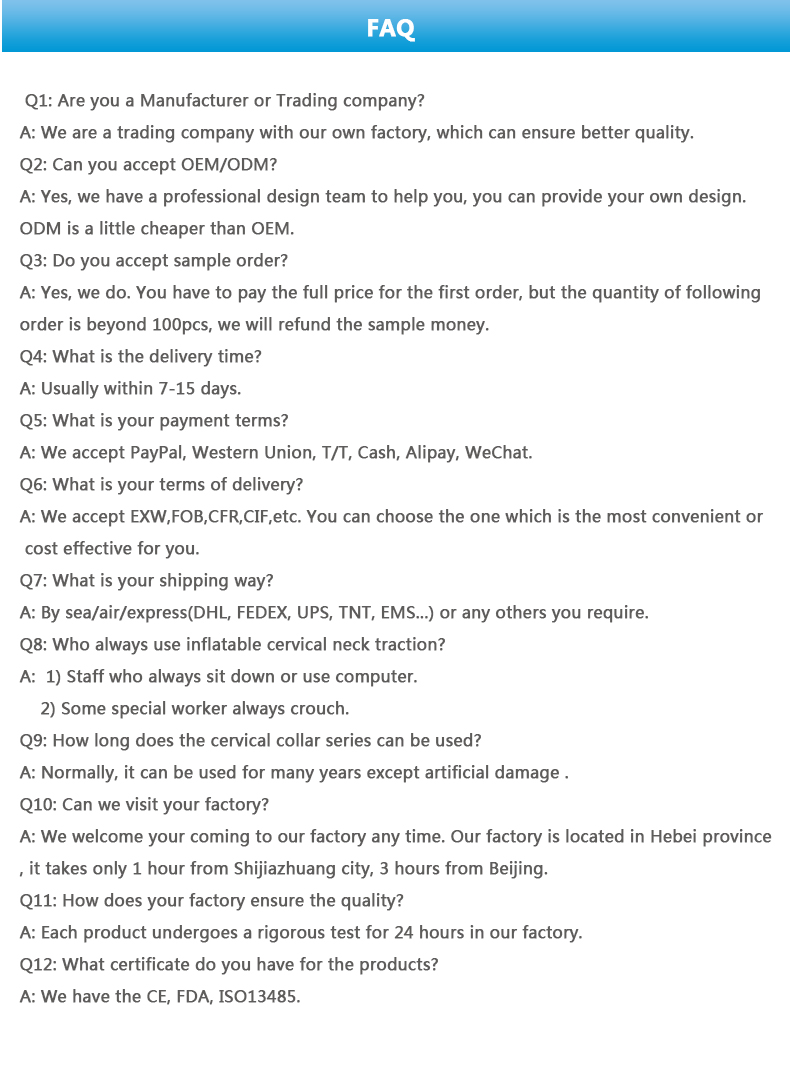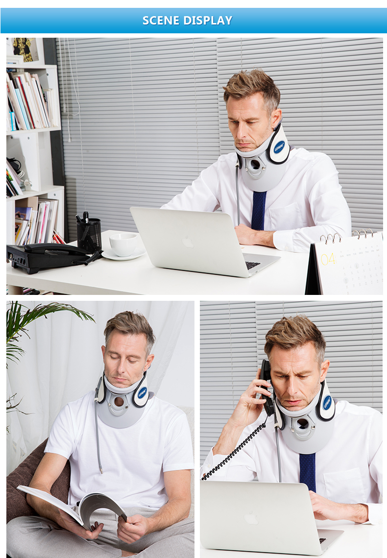 Features : Inflatable airbag, 20° arc traction, fits the human cervical spine arc, pure cotton inner fabric, comfortable to wear, breathable hole design, sultry breathable cloth