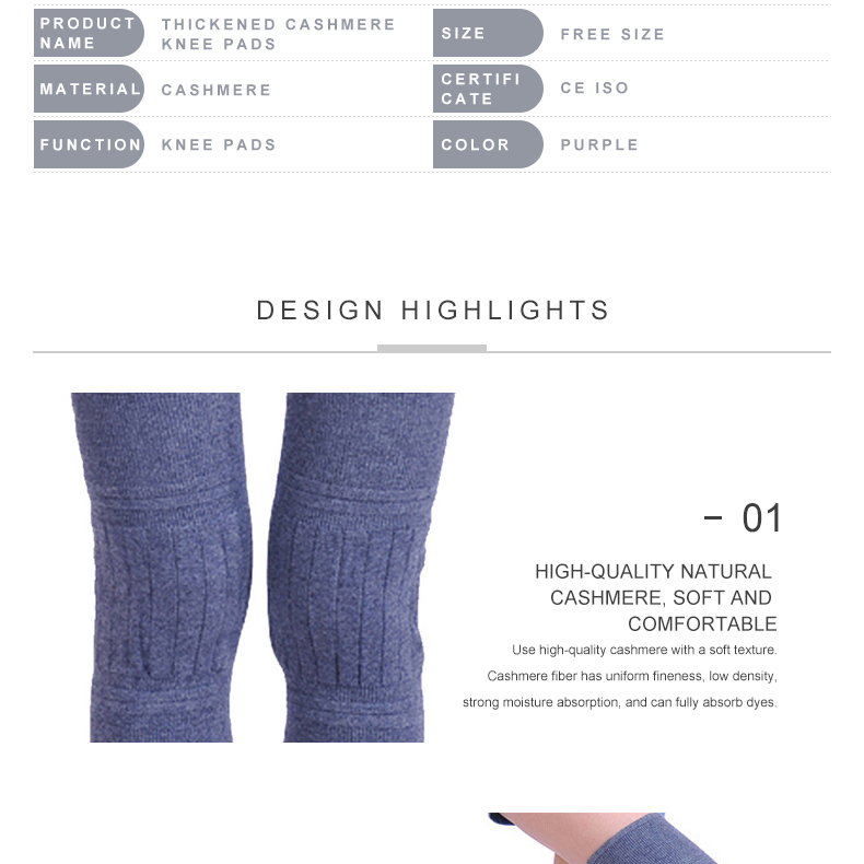 Type : Knee pad Place of Origin : China Material : Cashmere Color : black,purple Certificate : CE ISO